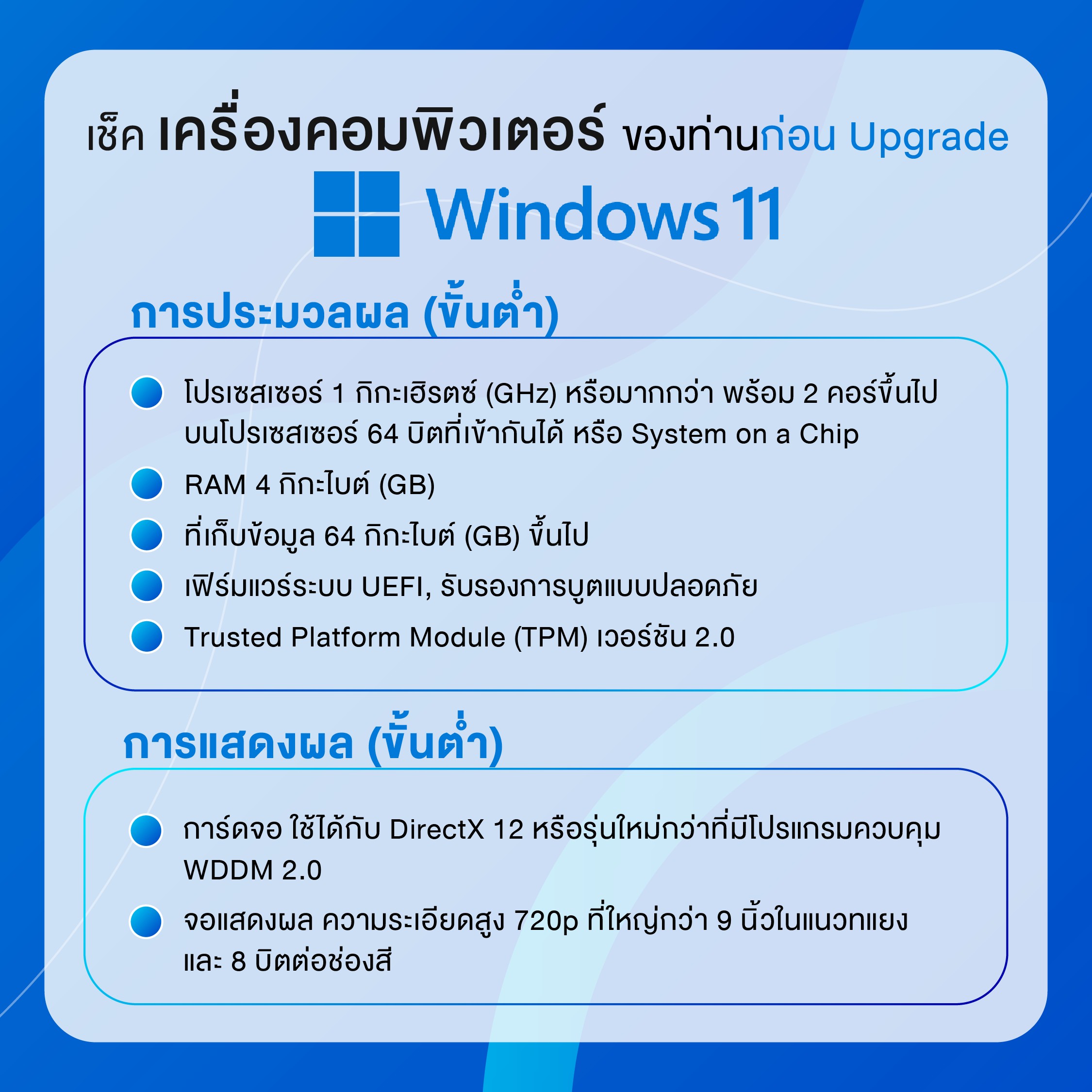 - UEFI (ไม่ใช่ BIOS) และต้องรองรับ Secure Boot